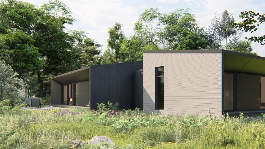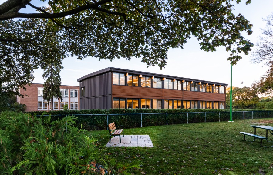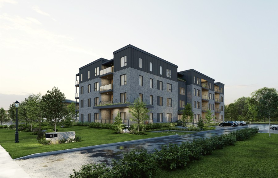 Loggia, le premier bâtiment de six étages modulaires en bois au Québec, Saint-Lambert, Blouin Beauchamp Architectes. Photo : Steve Montpetit