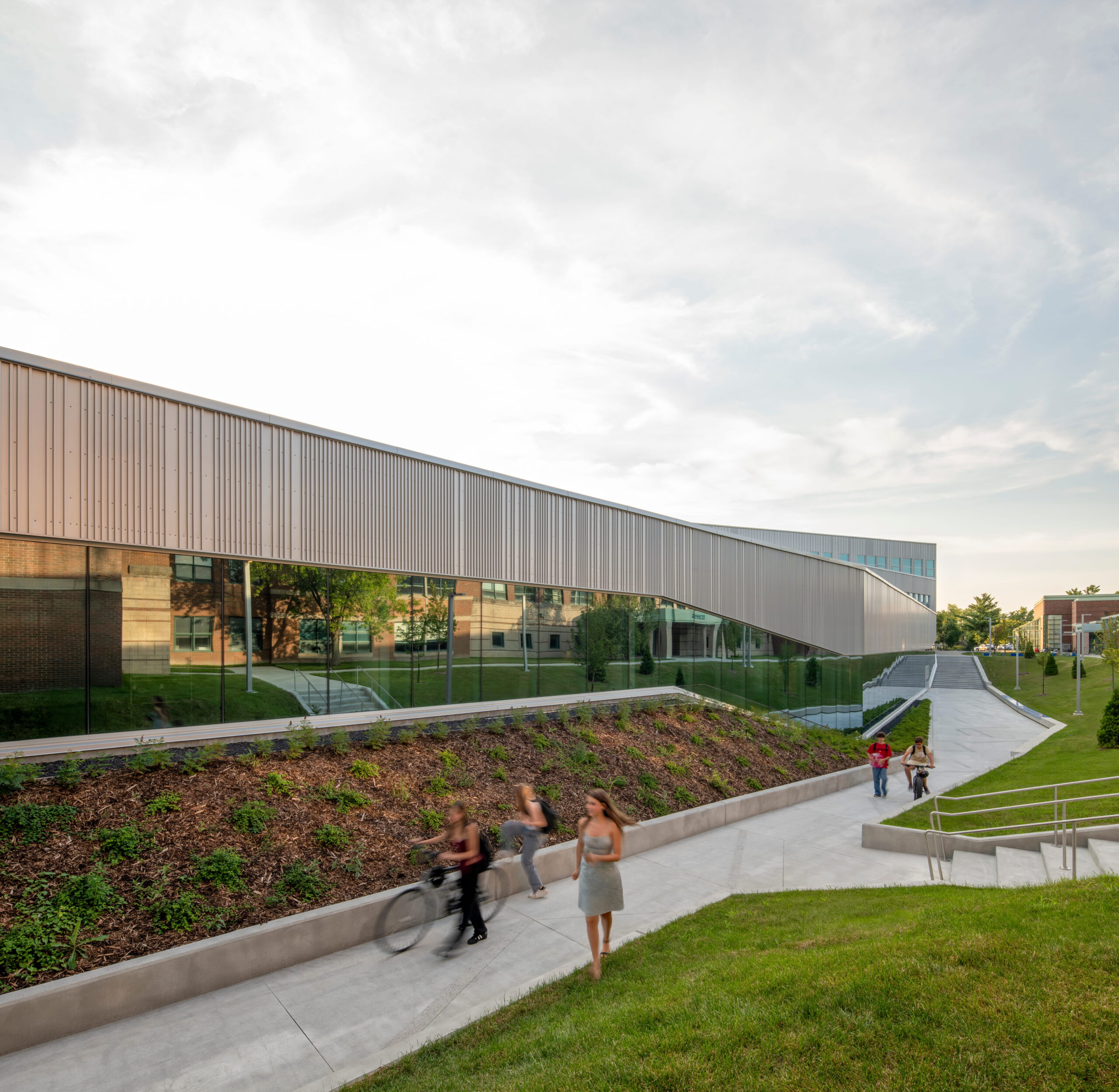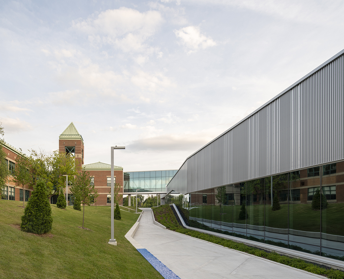 L’établissement intègre une stratégie environnementale ambitieuse. Certification LEED Or, géothermie, toitures végétalisées et jardins pluviaux participent à la performance écologique tout en sensibilisant les usagers aux enjeux environnementaux.
