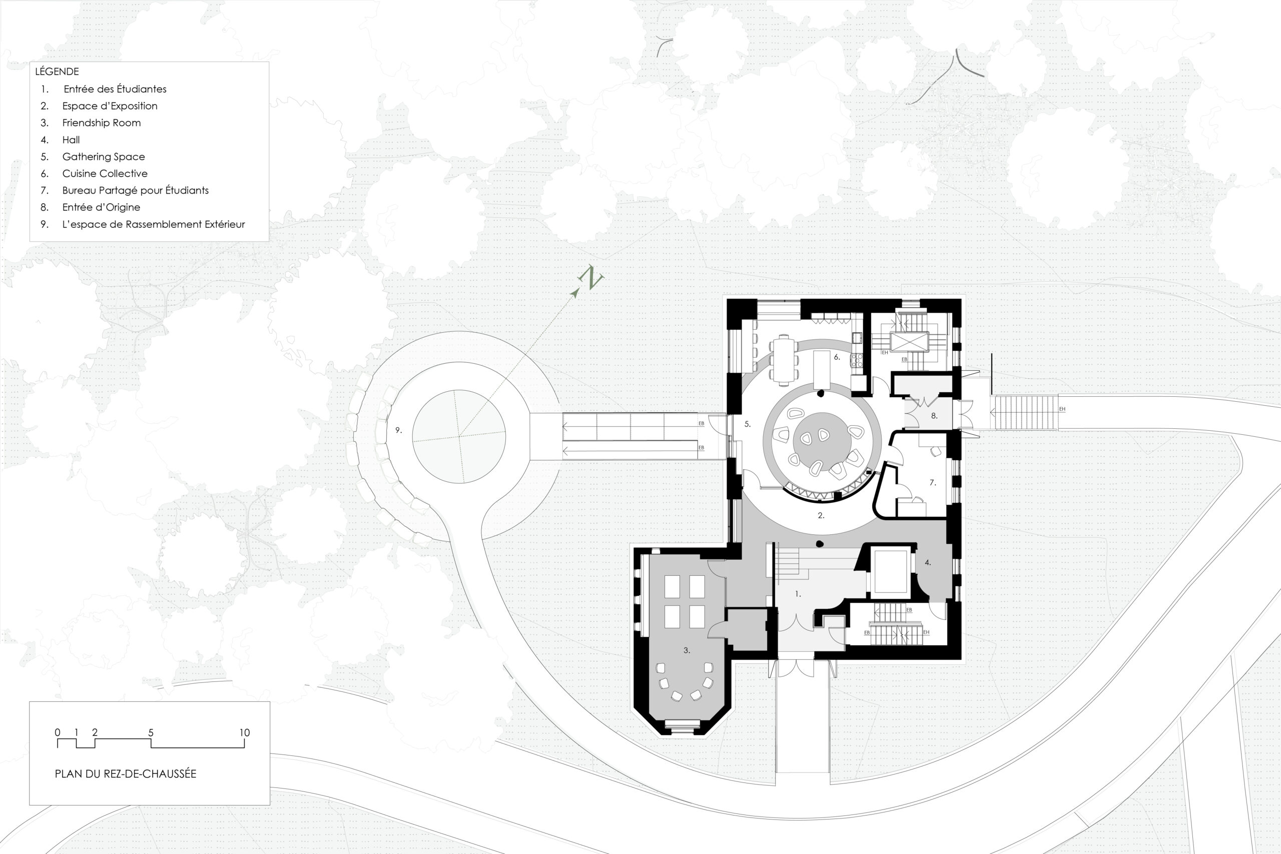 Au cœur du projet, le cercle agit comme principe organisateur et métaphore. Depuis le Gathering Space central, des ondes concentriques structurent les espaces intérieurs et l’aménagement paysager, évoquant la diffusion du savoir. Refusant toute appropriation formelle, les architectes privilégient une interprétation sensible de l’identité autochtone, exprimée par les courbes, les matériaux naturels et une esthétique chaleureuse, inspirée du résidentiel.