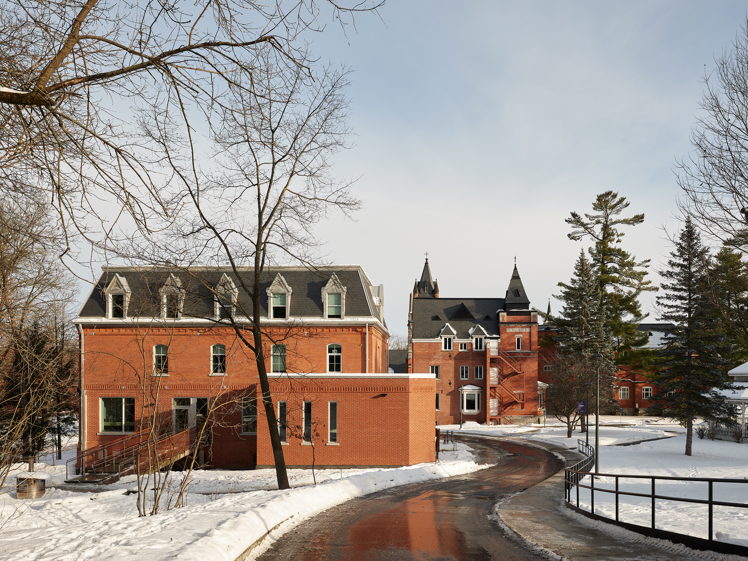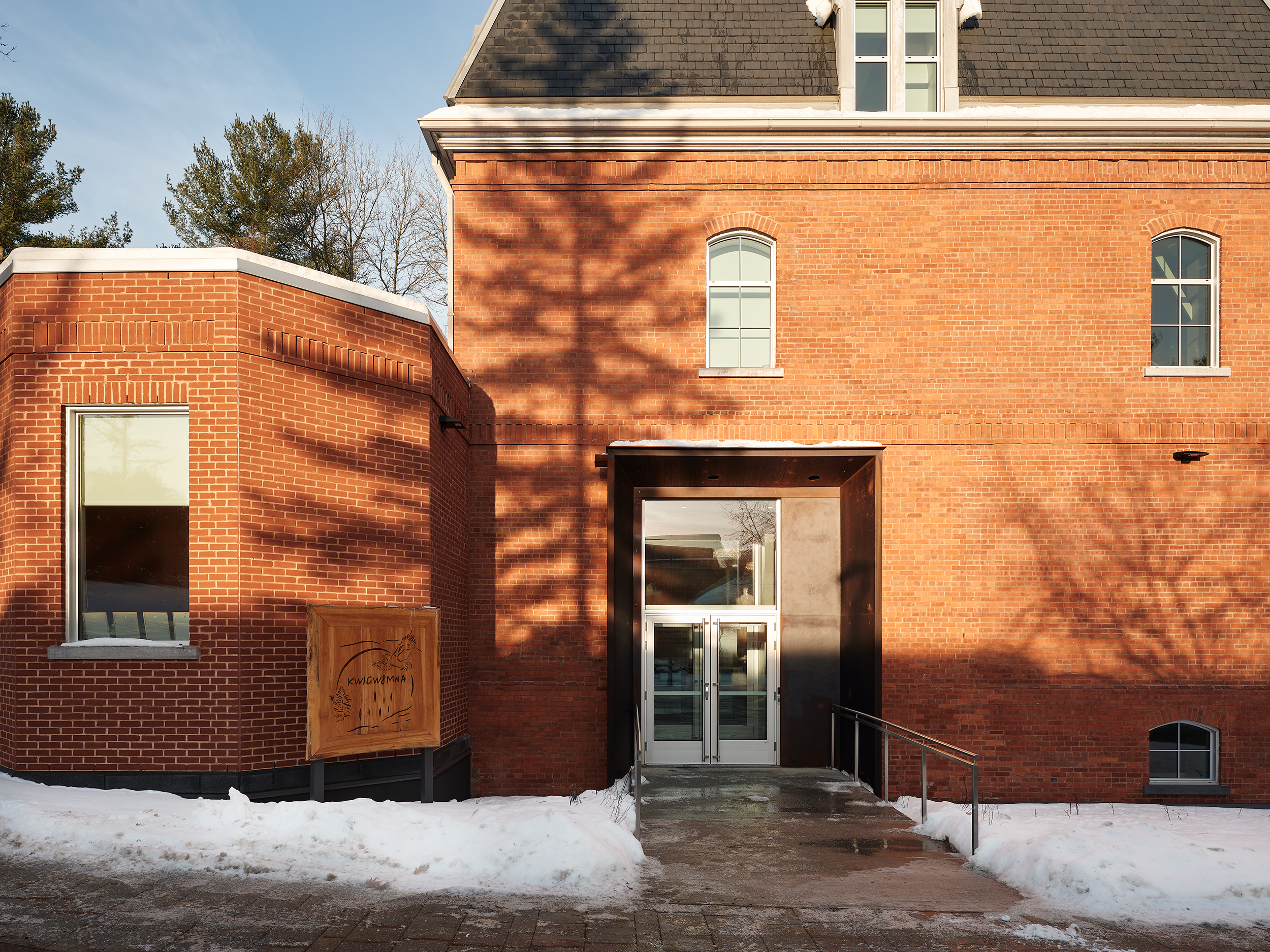 Inauguré en 2025 sur le campus de l’Université Bishop’s, Kwigw8mna — « notre maison à toutes et à tous » en abénaki — incarne une transformation architecturale et symbolique exemplaire. Implanté sur le territoire ancestral de la Nation Abénaki, l’édifice néogothique de 1892, autrefois dédié à la formation du clergé anglican, est aujourd’hui réinvesti comme centre de réussite, de rassemblement, d’étude et de recherche pour les étudiants des Premières Nations, ainsi que pour la communauté élargie. Le projet transforme la charge historique du lieu pour en faire un puissant levier d’agentivité, d’inclusion et de dialogue.