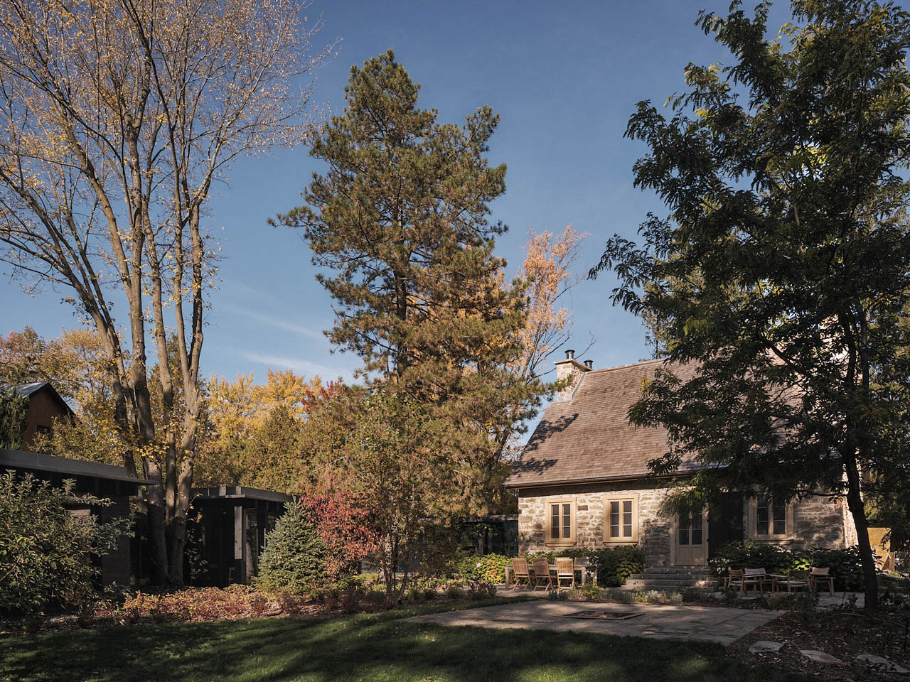 Érigée en 1811 au bord de la rivière des Mille Îles, la maison Aubé est une demeure des patriotes implantée au cœur d’un vaste jardin, vestige d’anciennes terres agricoles. Habité par la même famille depuis des générations, ce site est devenu au fil du temps le théâtre d’une histoire architecturale et humaine multigénérationnelle. Face à l’évolution des usages et à l’accumulation d’interventions ponctuelles, les propriétaires ont souhaité redonner à la maison patrimoniale sa cohérence et sa force d’origine, tout en augmentant sa capacité d’accueil.