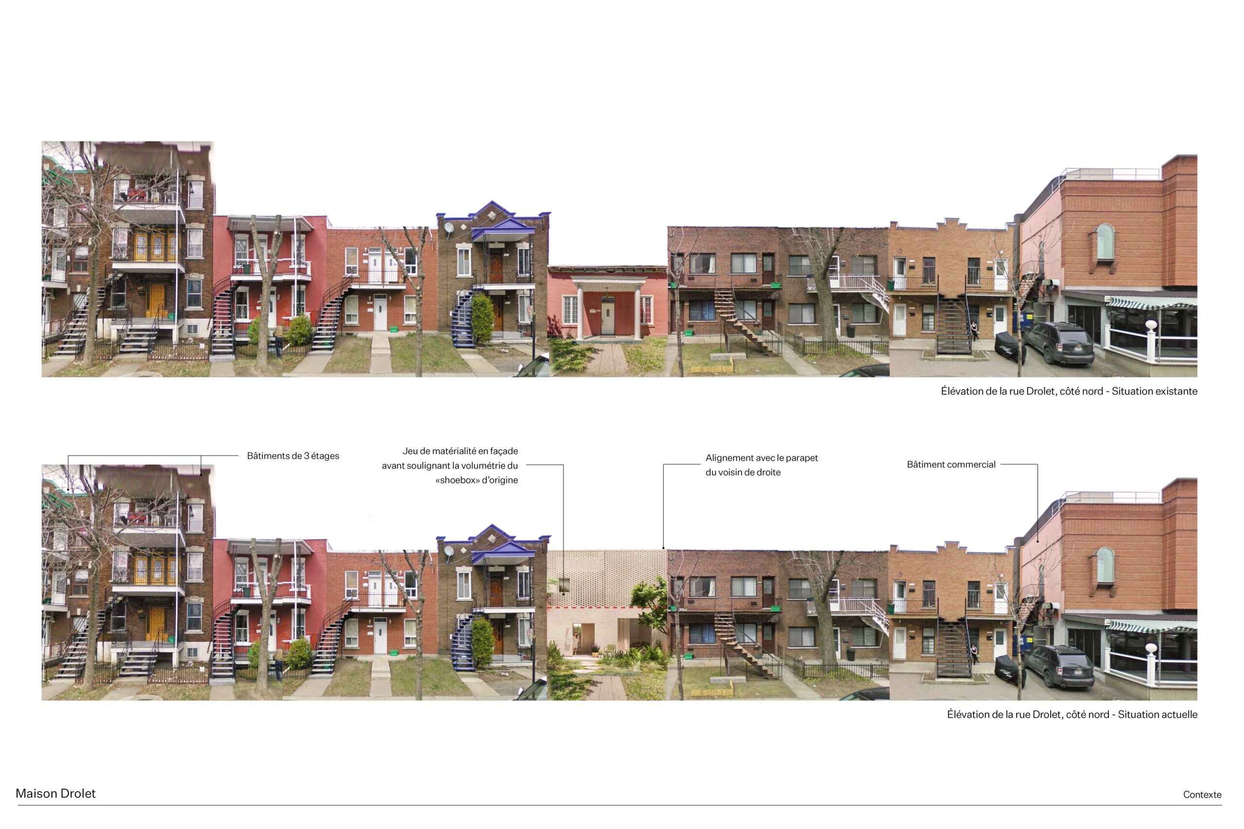 Le projet consiste en la rénovation et l’agrandissement d’un shoebox, typologie emblématique de la culture montréalaise. Cette intervention transforme la maison en duplex par l’ajout d’un étage, s’alignant harmonieusement avec le contexte urbain éclectique du quartier. Face à un bâtiment industriel de quatre étages, le concept architectural privilégie l’intimité renforcée comme principe fondateur.