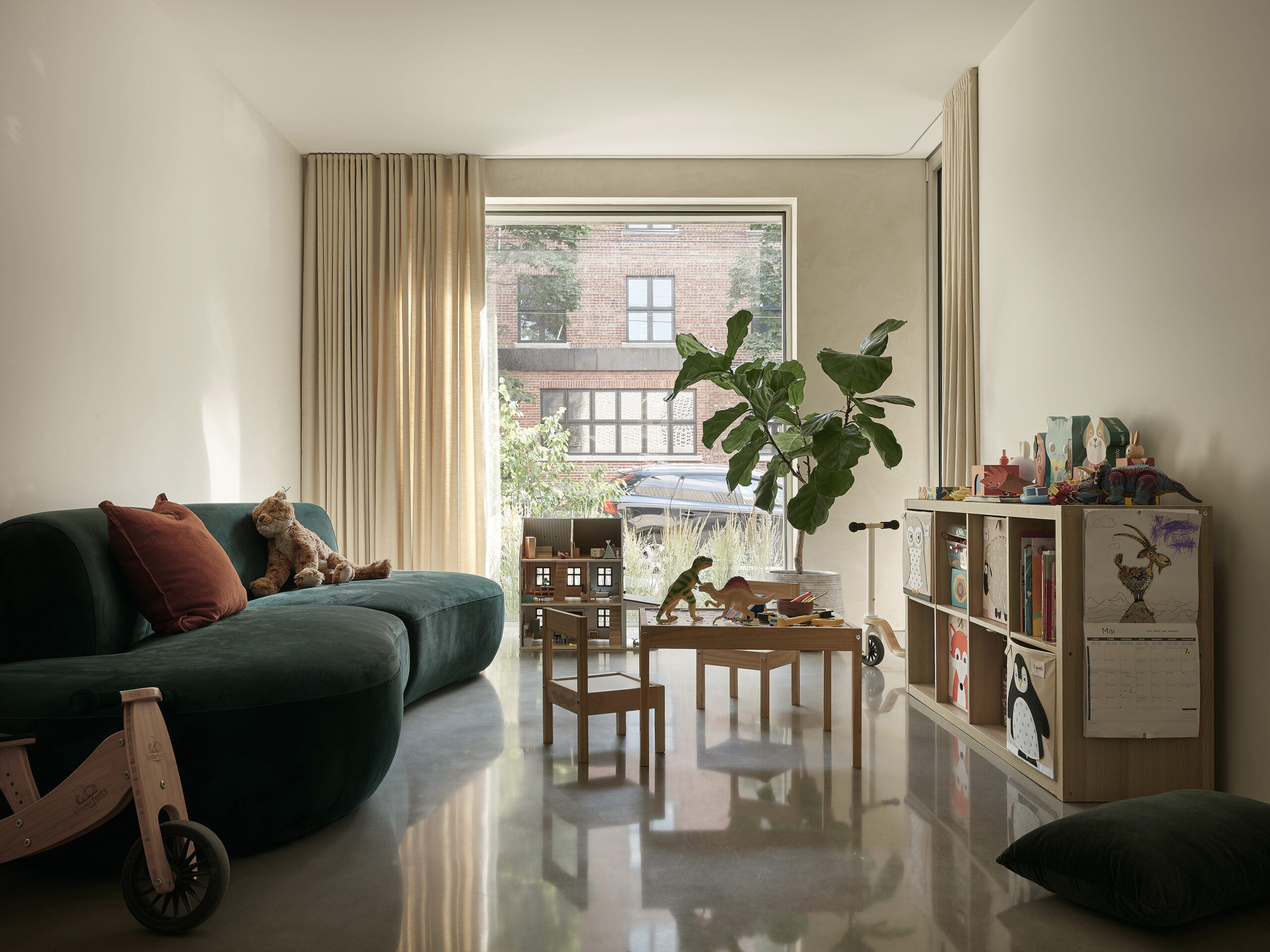 La Maison Drolet représente un second projet réalisé pour des clientes nouvellement parents, aspirant à créer un espace résidentiel au concept fort qui repense les modèles traditionnels de l’habitation montréalaise.