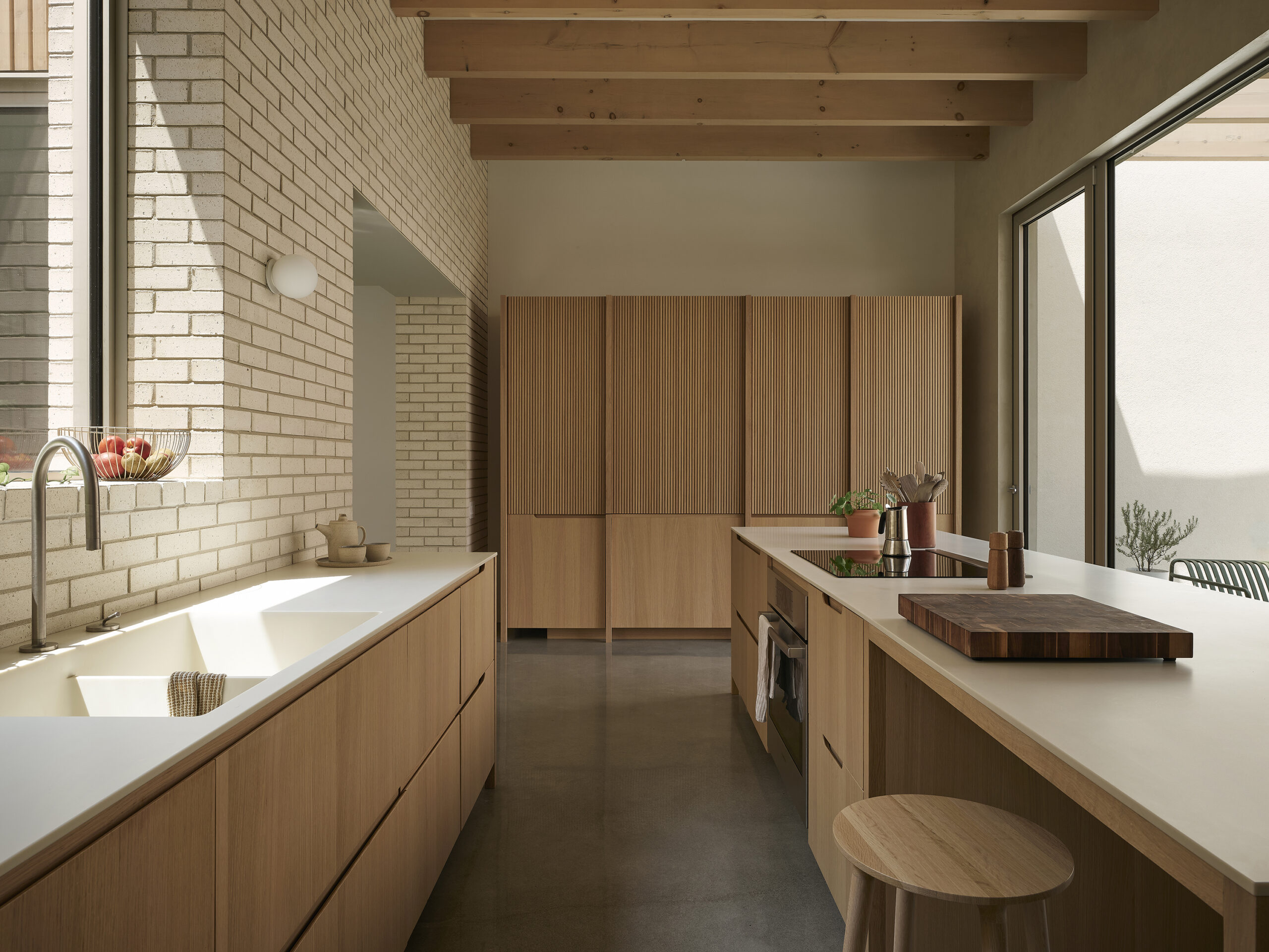 Rénovation et agrandissement d’une maison de type shoeboxle projet se déploie dans un habile jeu d’ouvertures alignées laissant passer la lumière et le regard tout en préservant l’intimité.