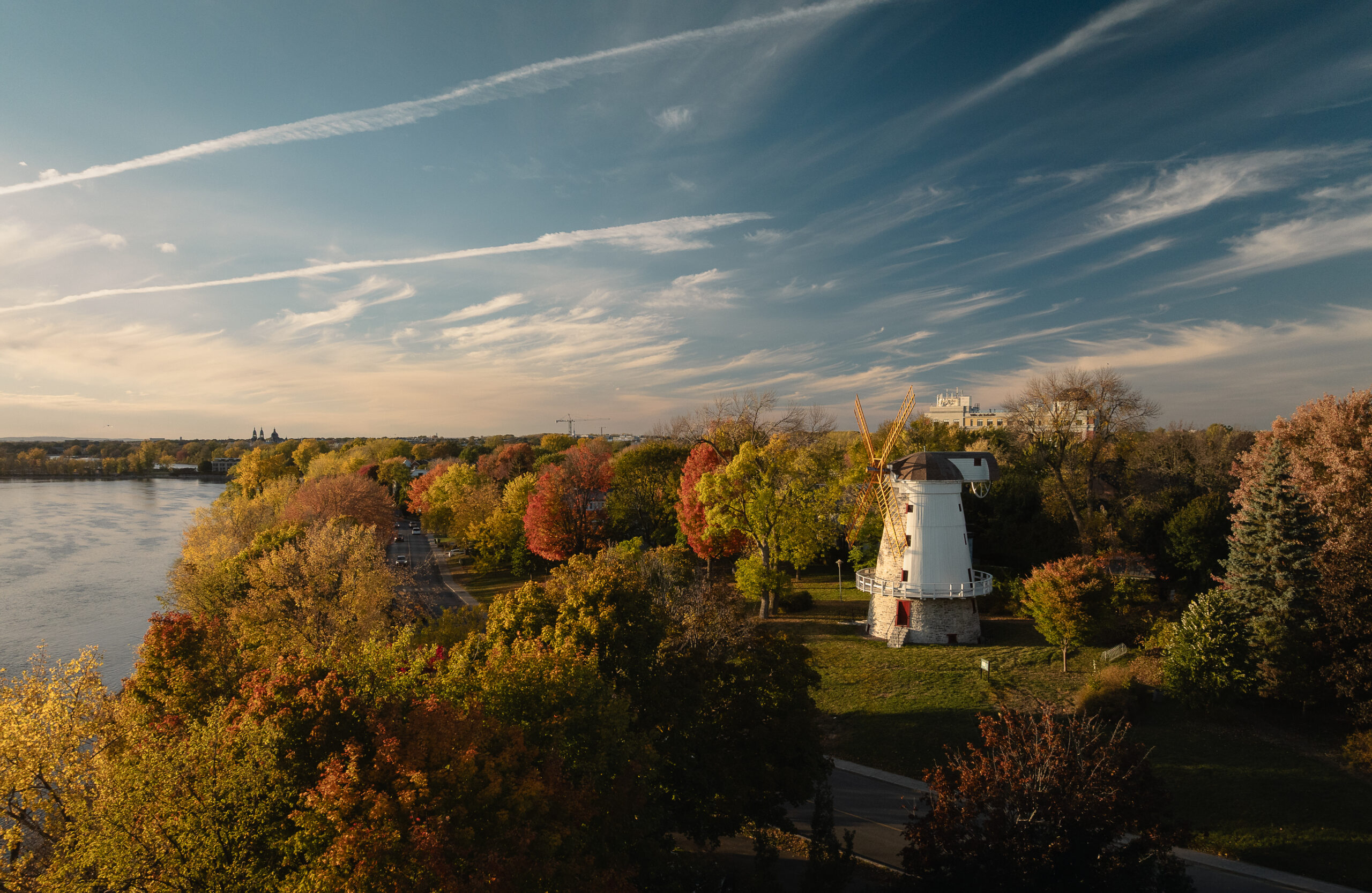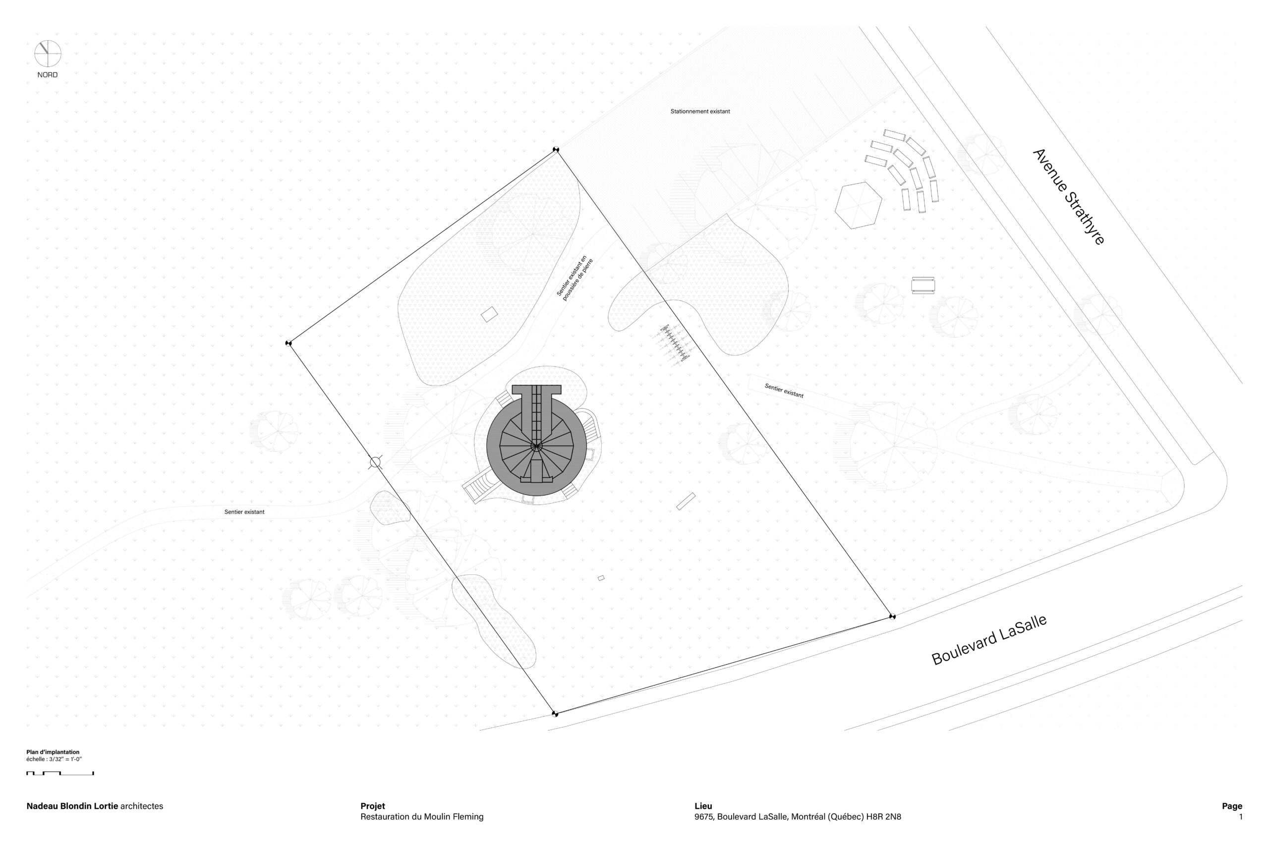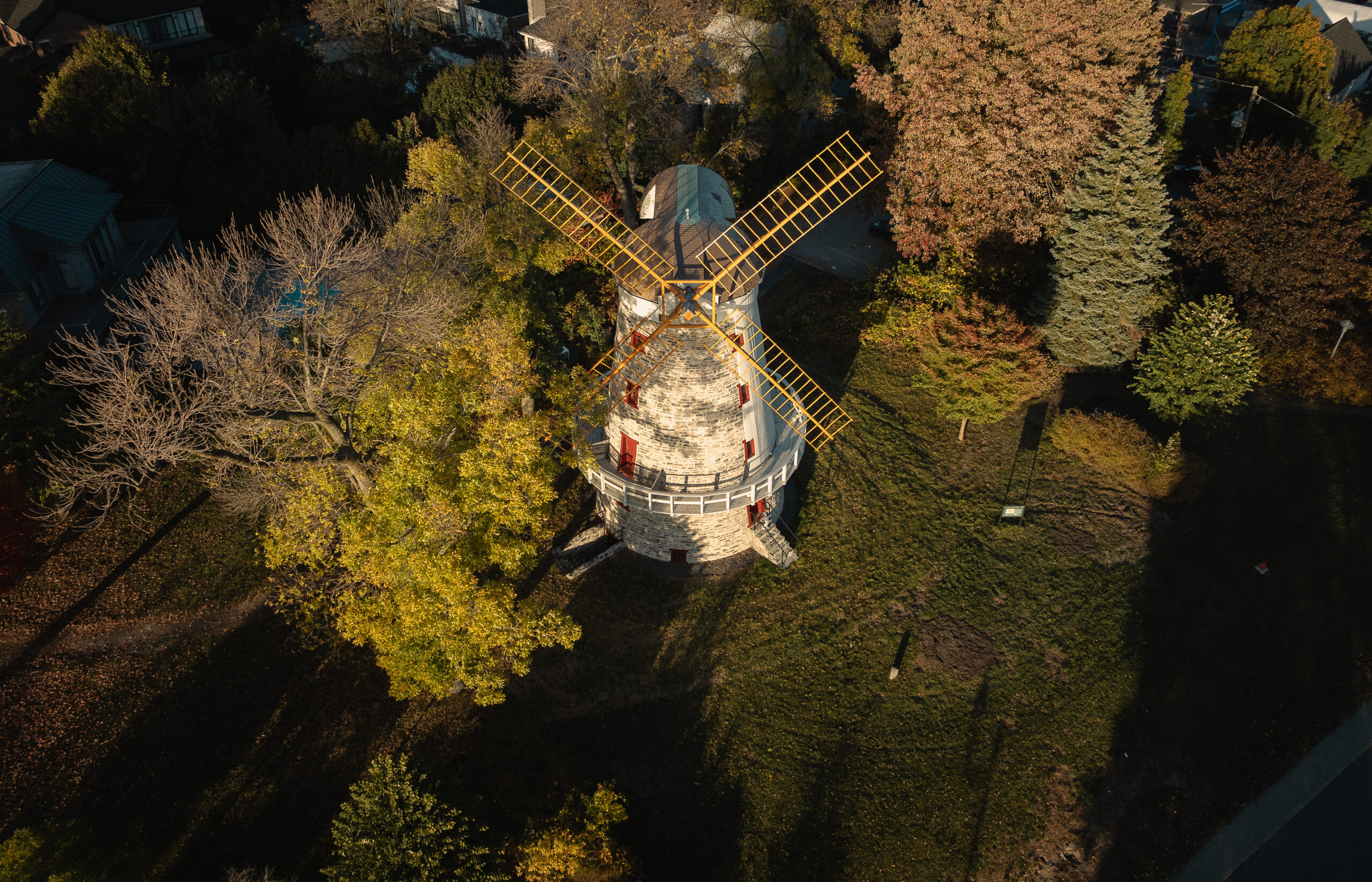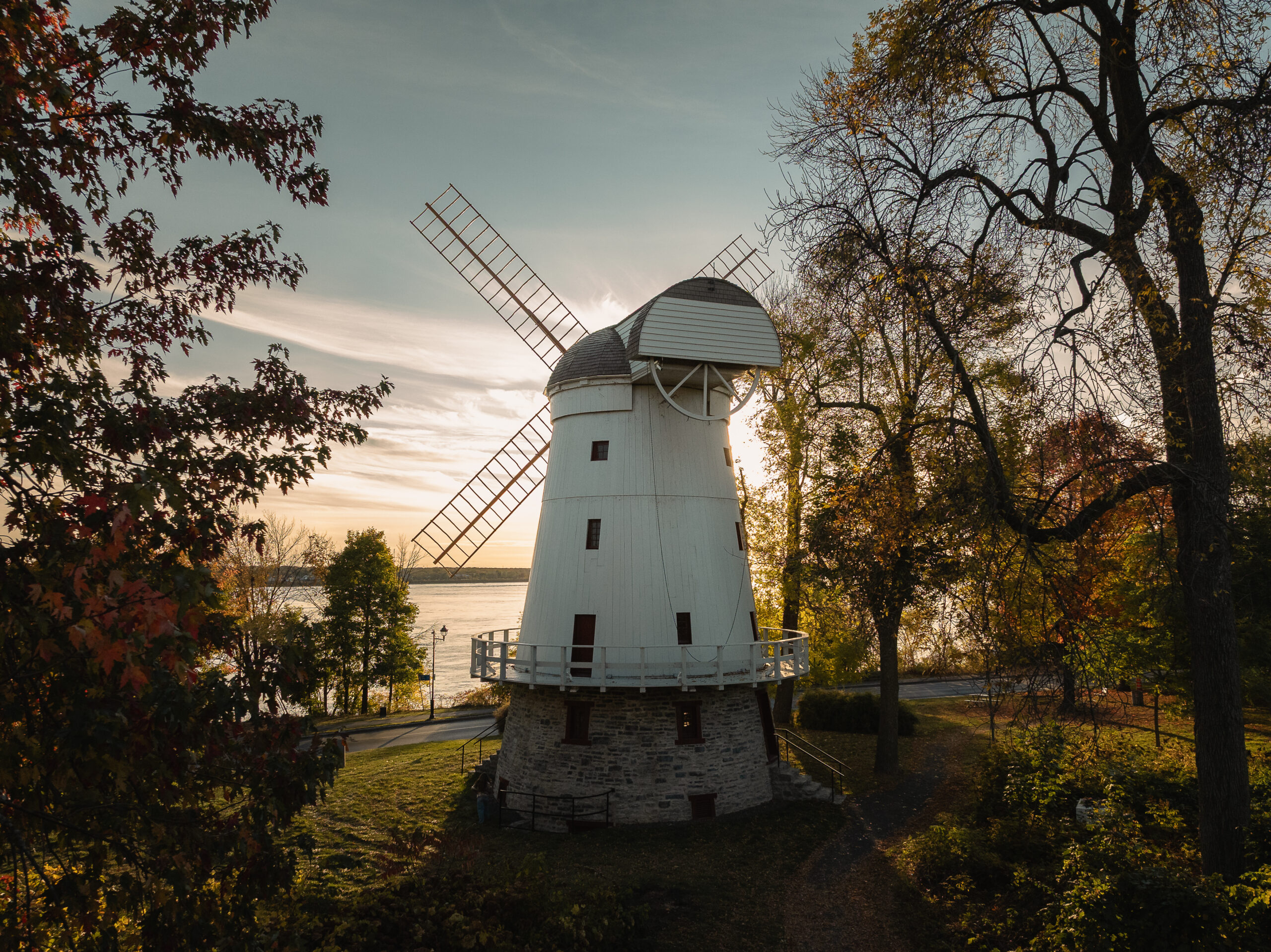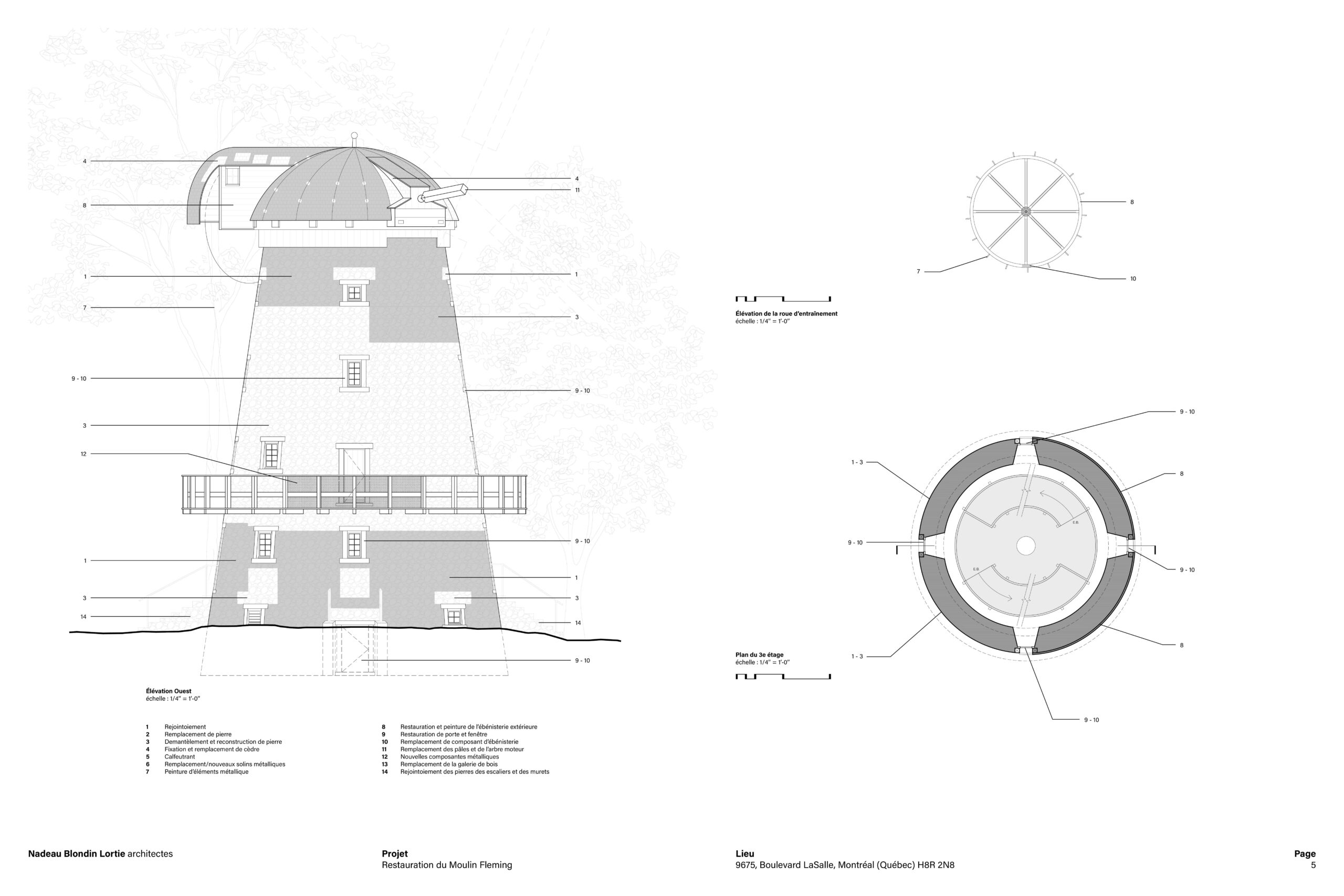 La restauration du moulin à vent Fleming, situé à LaSalle sur l’île de Montréal, constitue un projet patrimonial d’une grande complexité, conjuguant conservation, défis techniques et engagement collectif. Érigé en 1827, le moulin est aujourd’hui le seul moulin-tour de type britannique subsistant au Québec et est classé bien patrimonial depuis 1983. Son état de dégradation avancé, aggravé par l’effondrement des ailes lors de vents violents en 2019, rendait nécessaire une intervention majeure touchant l’enveloppe, la structure et les composantes emblématiques du bâtiment.