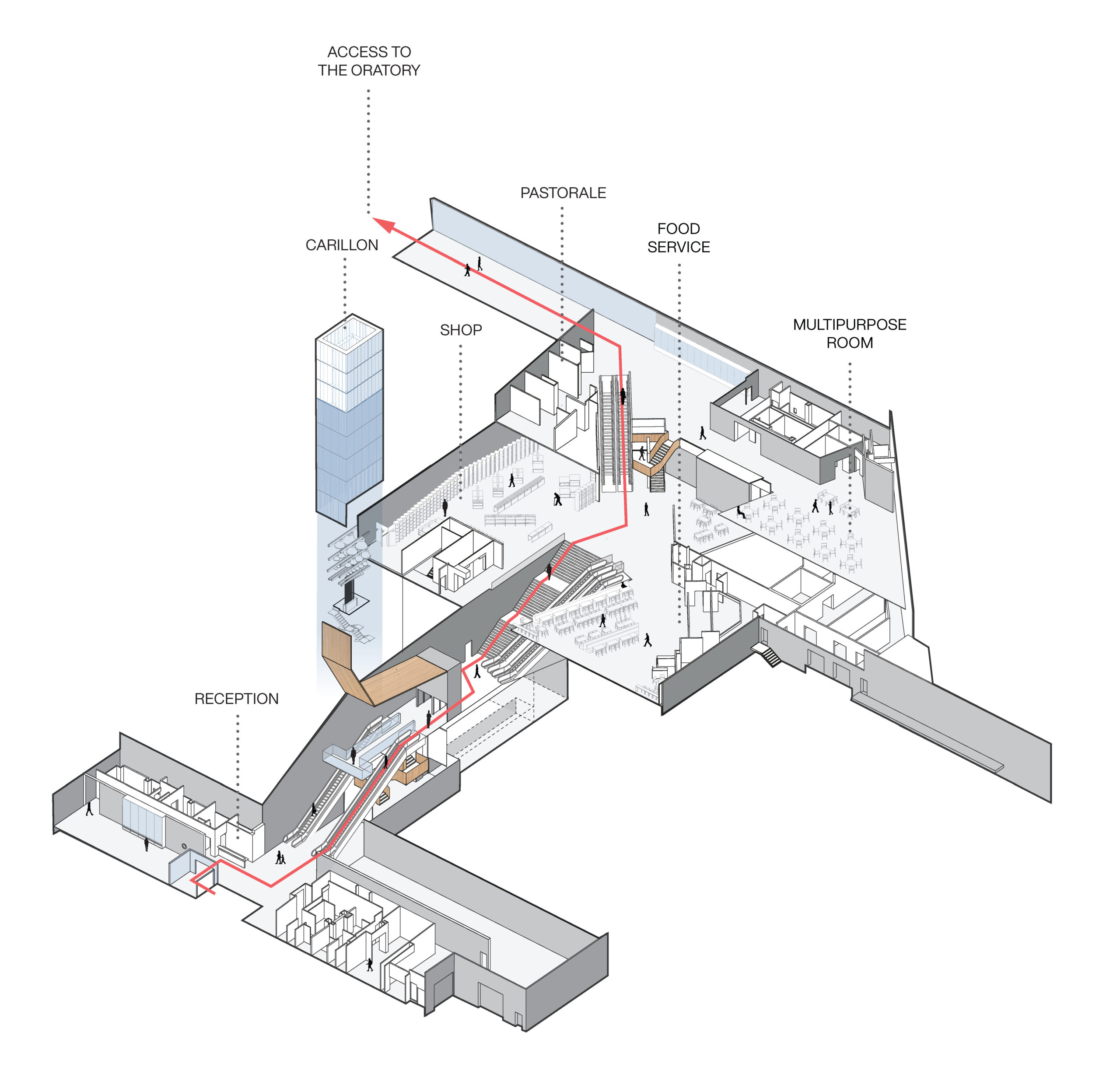 Cette insertion subtile sert désormais d’assise à la géométrie et au mythe de l’Oratoire en plus d’offrir un parcours clair, accessible et lumineux.