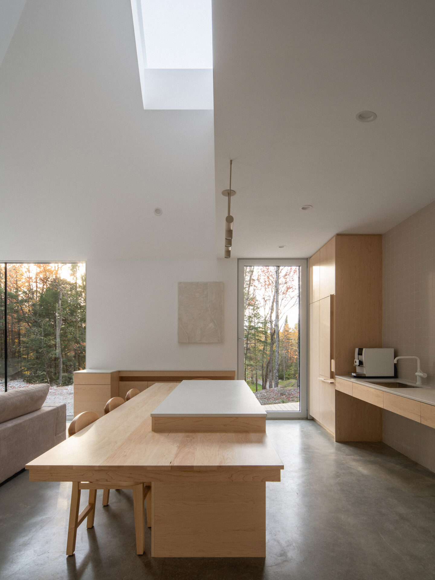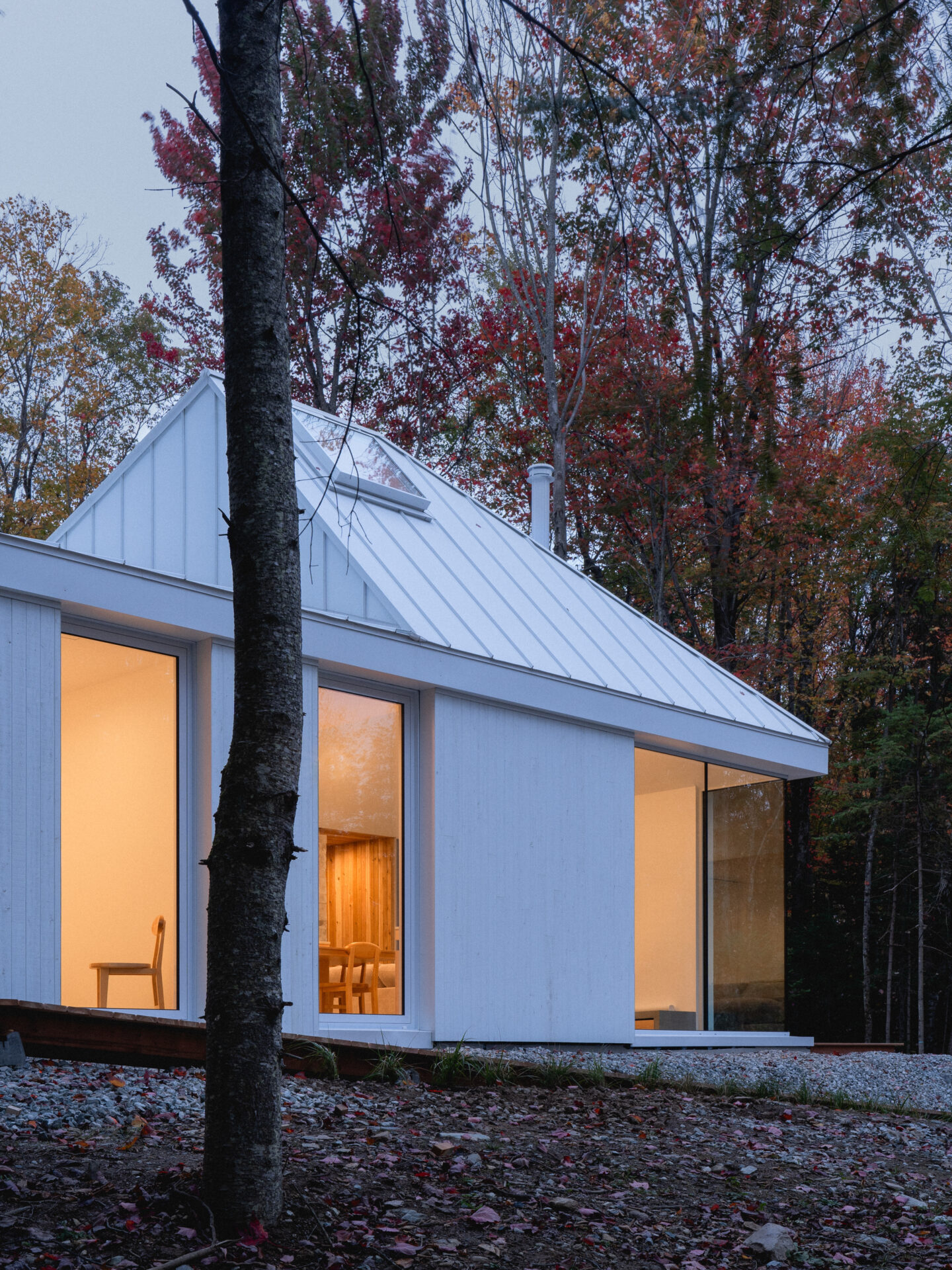 Ce gîte des Cantons-de-l’Est se démarque par son accessibilité universelle peu commune pour sa typologie, avec des dégagements généreux et un mobilier subtilement adapté. Centrée sur le bien-être, la construction mise sur des matériaux sains et durables, tels que l’isolant en laine de chanvre, le bois et les finitions sans COV. Le volume hypercompact et très efficace du point de vue énergétique n’en respire pas moins l’élégance tranquille qui sied à merveille au cadre naturel.