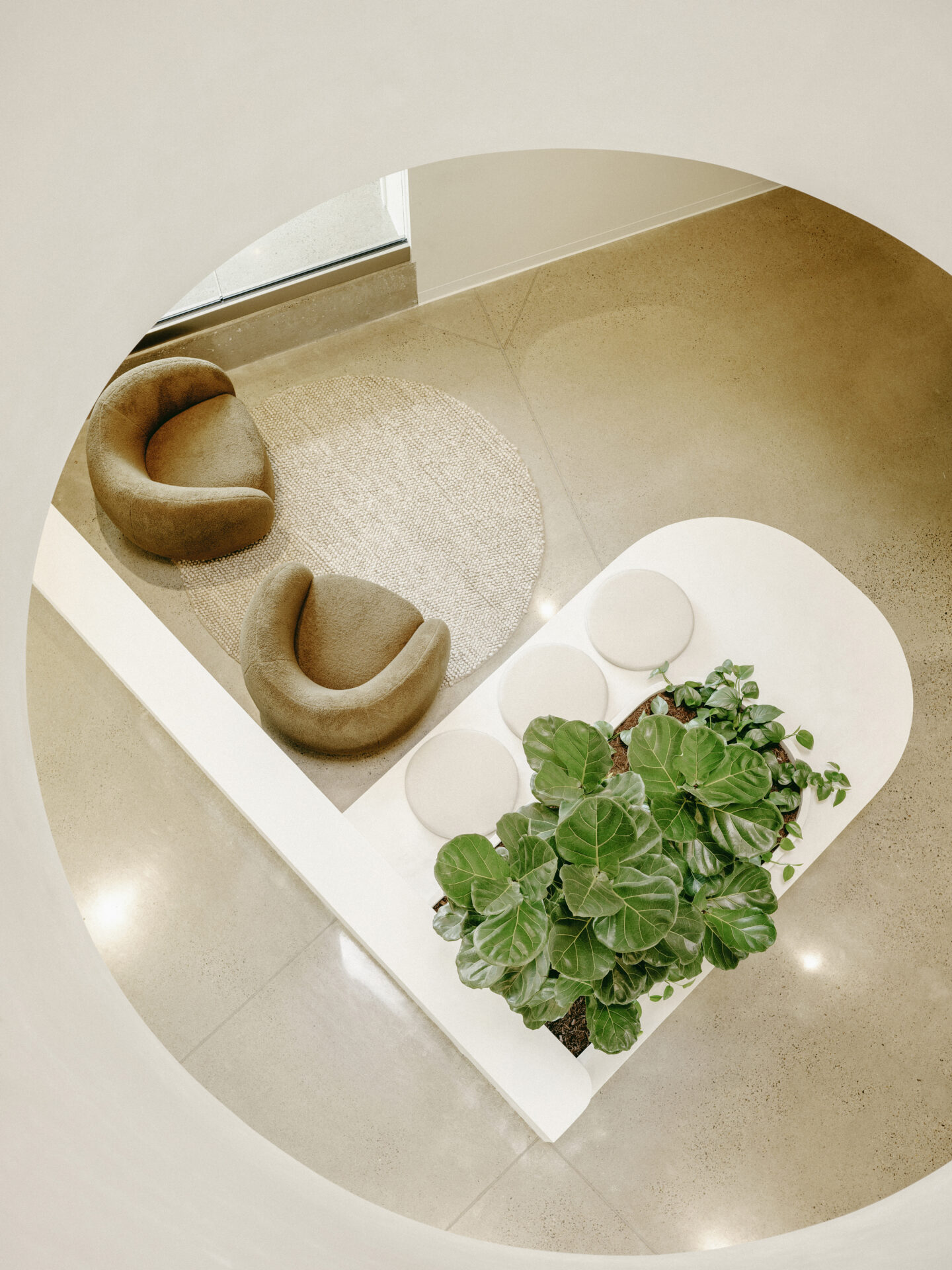 Un nouveau langage architectural tisse ainsi une nouvelle façon de circuler autour de la structure existante, la lumière naturelle, la chaleur de l’espace et la végétation. Un passage linéaire baigné de lumière et ponctué de jardins intérieurs relie la nouvelle entrée à un noyau central circulaire surplombé par un puits de lumière qui illumine le cœur de l’espace. Ce cœur négocie doucement les ambiances du lieu, entre le caractère solennel du recueillement et les éclats des retrouvailles.