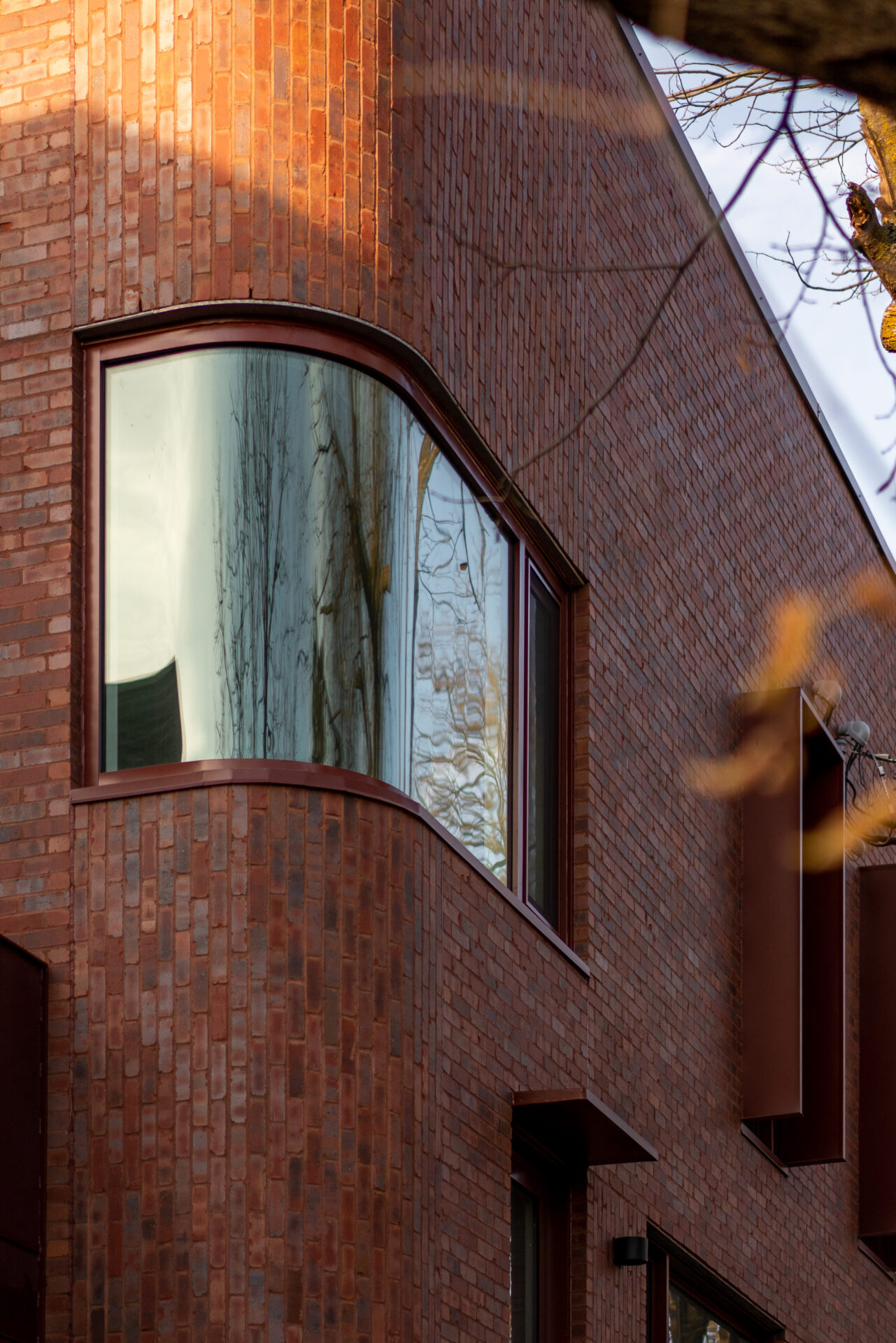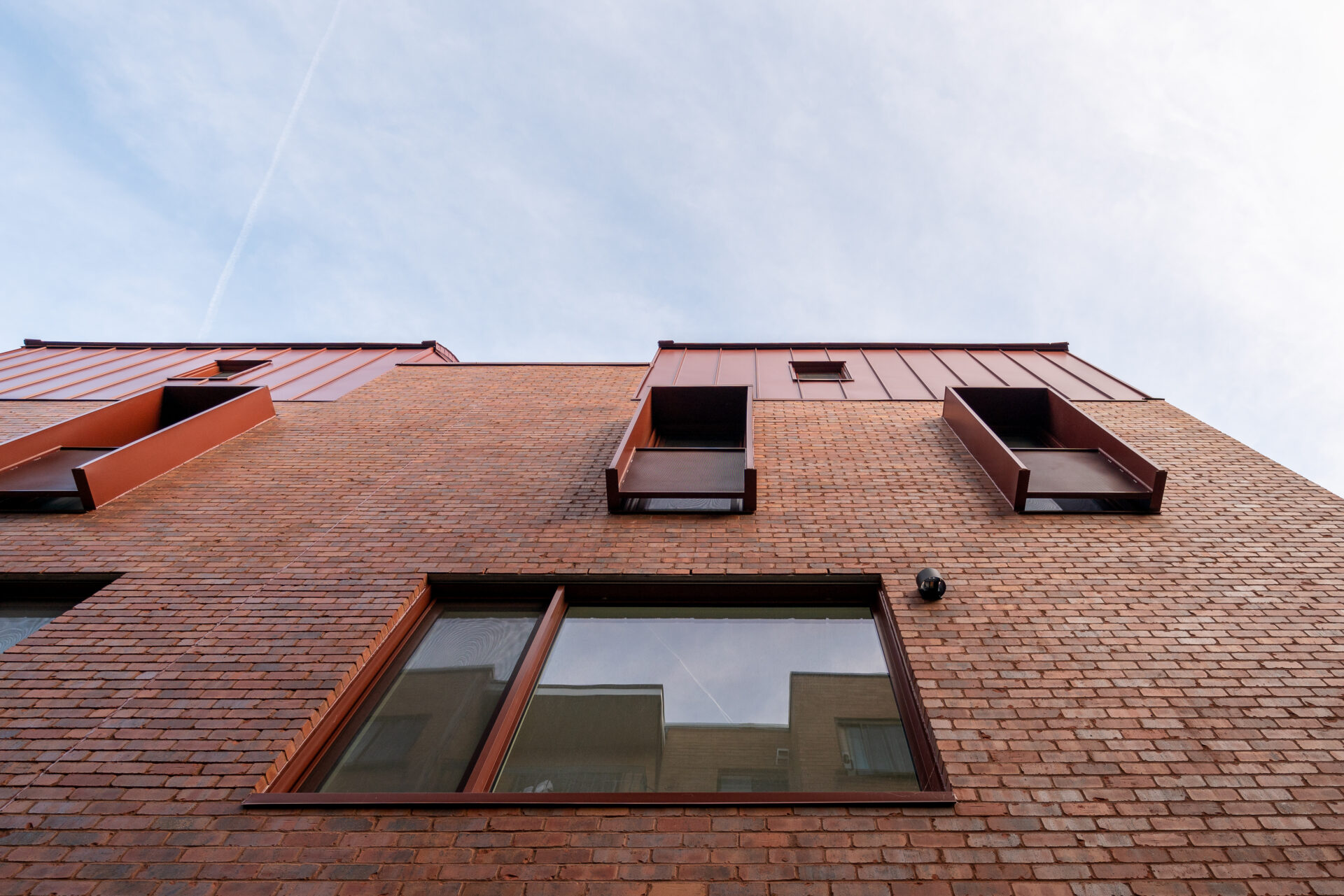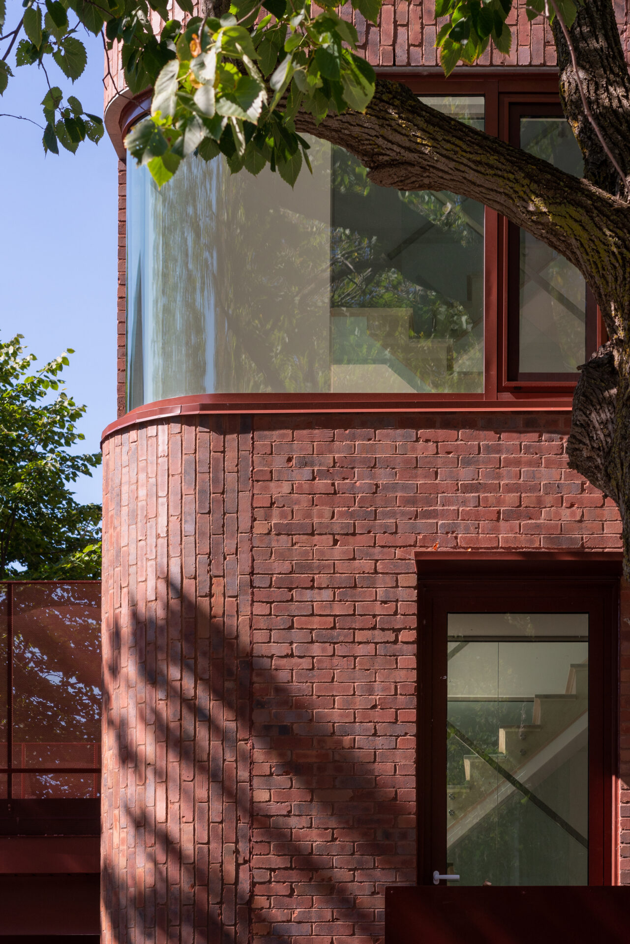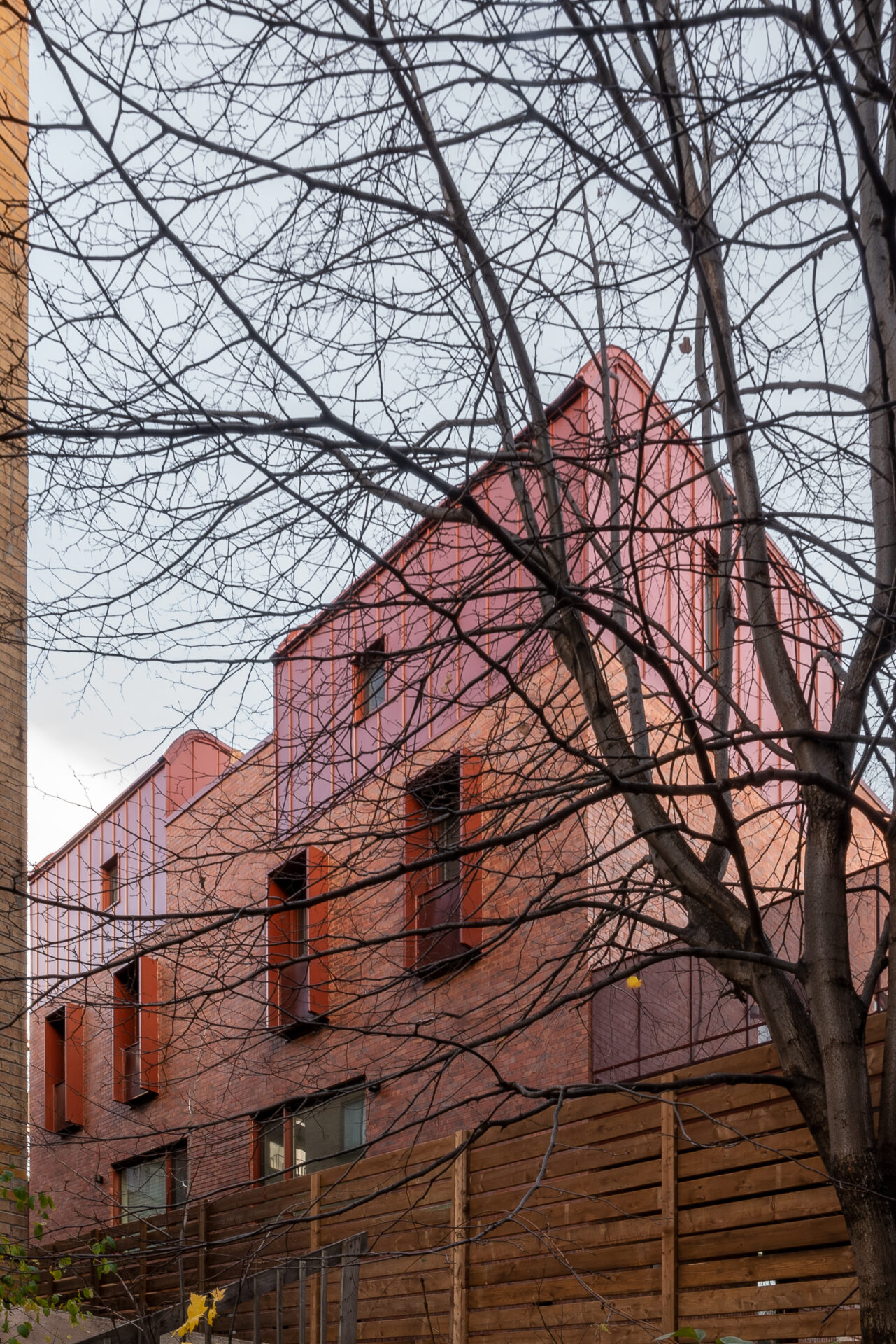 Implanté sur un terrain exigu dans le quartier Côte-des-Neiges, à Montréal, ce jumelé constitue un magnifique exemple de densification douce. Toutes ses façades présentent un haut niveau de maîtrise esthétique qui rehausse l’attrait du quartier et fait oublier la proximité des immeubles voisins. Qu’il s’agisse de sa fenêtre arrondie, des détails de la maçonnerie ou du savant équilibre entre ouvertures et zones d’intimité, les attributs de ce projet démontrent qu’il est possible de densifier la ville de façon respectueuse et expressive.