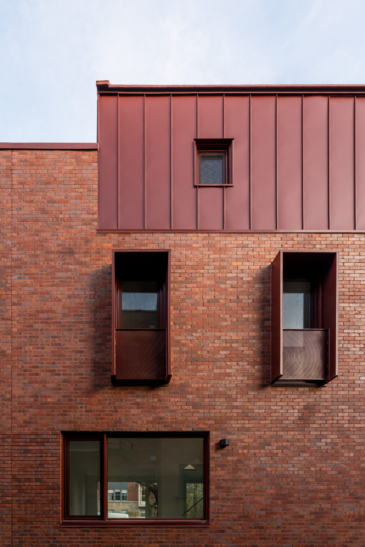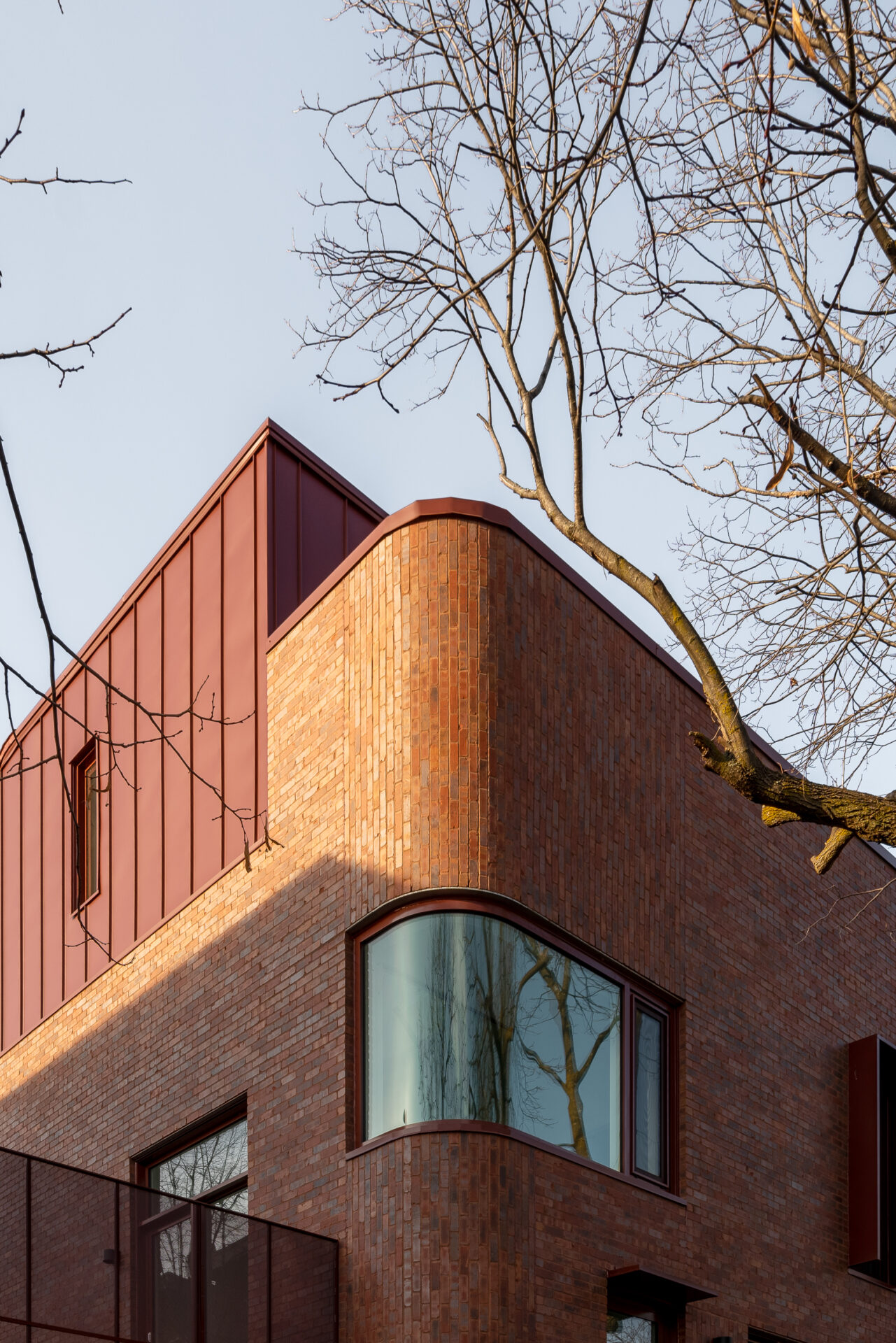 Le nouveau bâtiment mise sur un langage articulé par des jeux de courbes, notamment au niveau des murs et de la toiture. Il fait usage d’un grand nombre d’éléments décoratifs monochromes pour dynamiser les façades dont des écrans en acier perforé rouge vin ou encore des gardes-corps peints de la même couleur. Le travail de la maçonnerie ajoute aussi un élément de richesse à l’enveloppe, présentant des sections d’appareillage en panneresse horizontal et vertical.