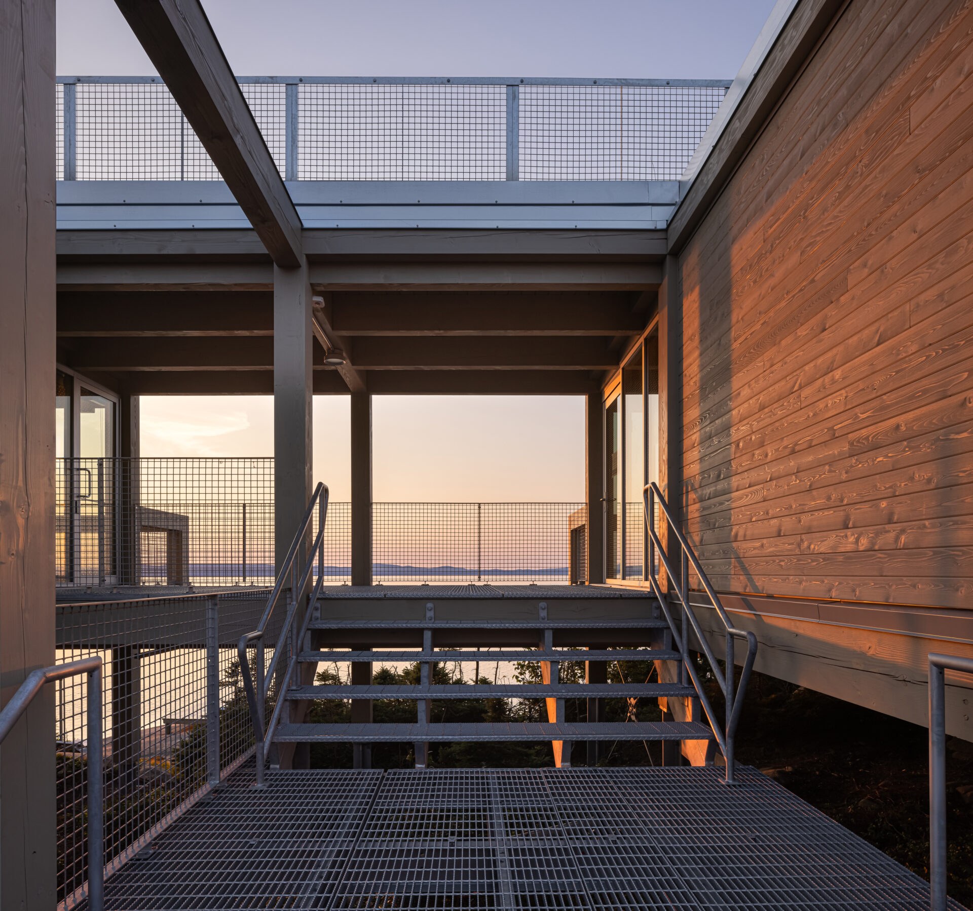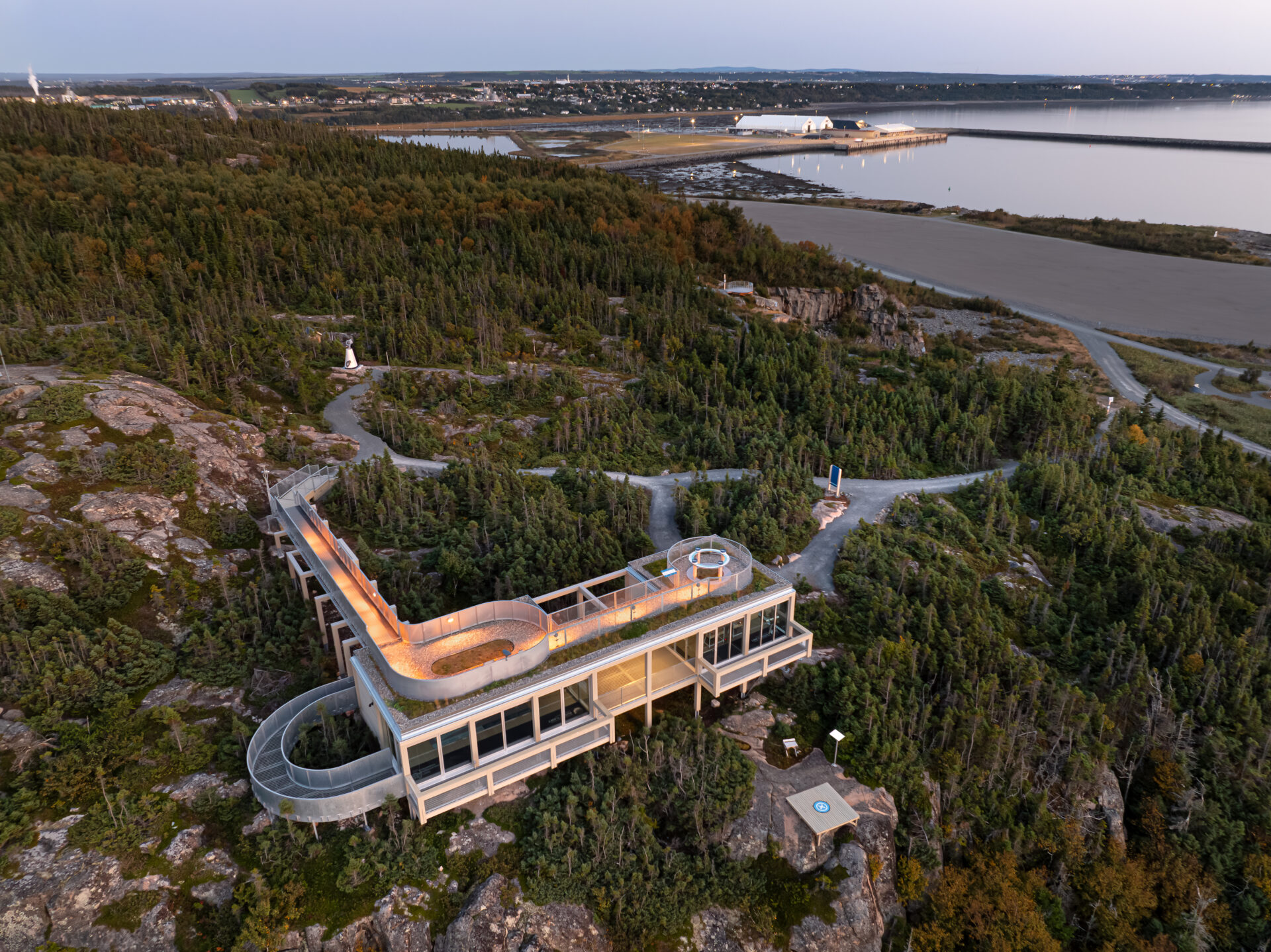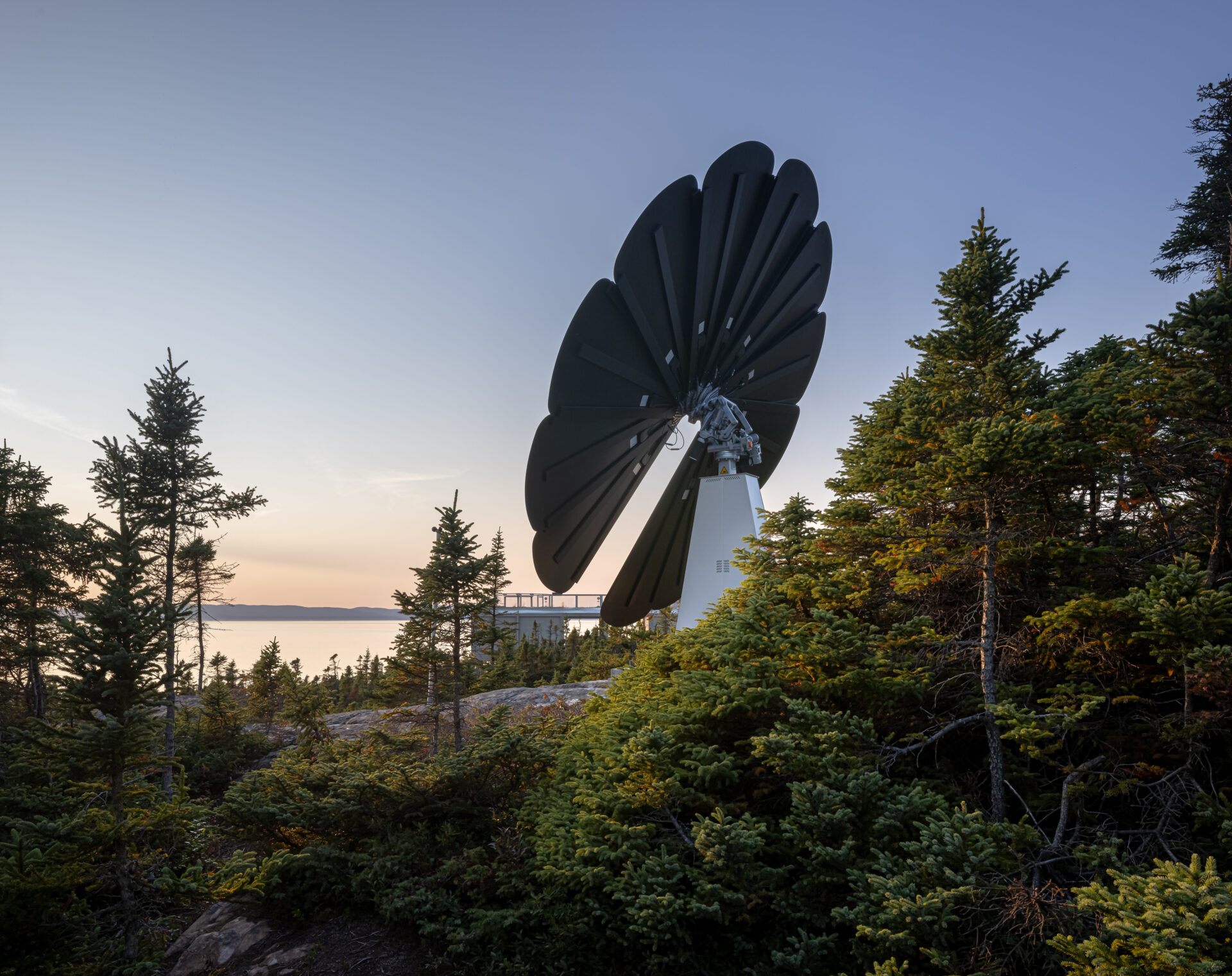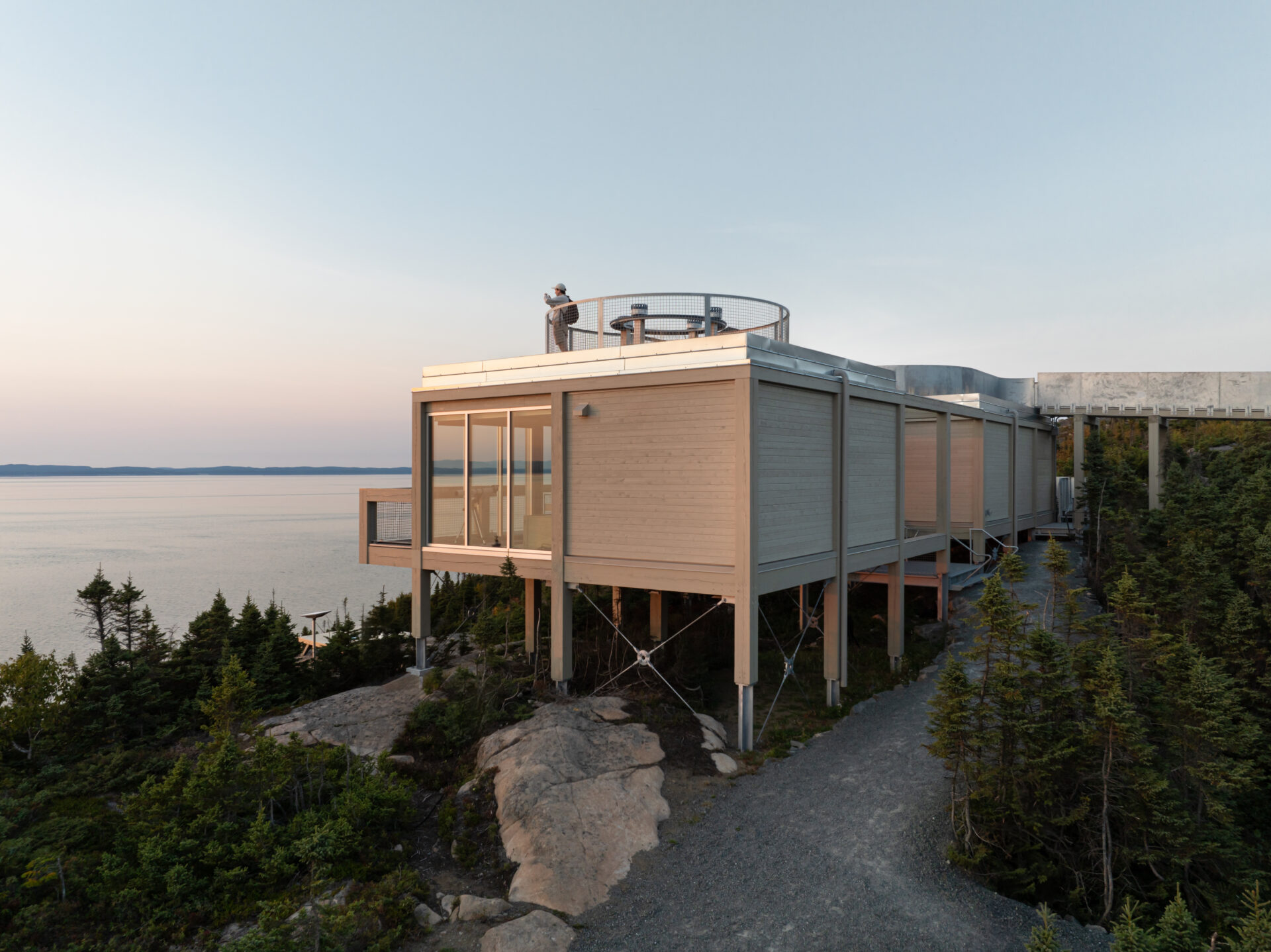 Située dans la portion ouest de la montagne de Gros-Cacouna, dans le Bas-Saint-Laurent, ce lieu d’observation est un modèle de sensibilité au contexte. Conçu selon la signature architecturale et paysagère de la Première Nation Wolastoqiyik Wahsipekuk, qui gère le site, il rappelle à chaque instant l’horizontalité et l’immensité du fleuve. Implanté sur pilotis, coiffé d’un toit végétalisé, le pavillon se fond dans la nature tout en proposant un parcours ludique invitant à la découverte. Le jury a été séduit par la simplicité et la fraîcheur de cet objet qui possède son langage propre, à mille lieues des dogmes de l’architecture contemporaine.