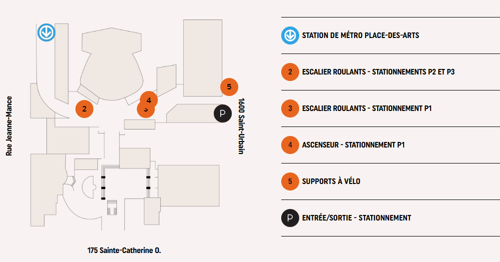 - Entrée par la Maison symphonique : 1600 rue Saint-Urbain
